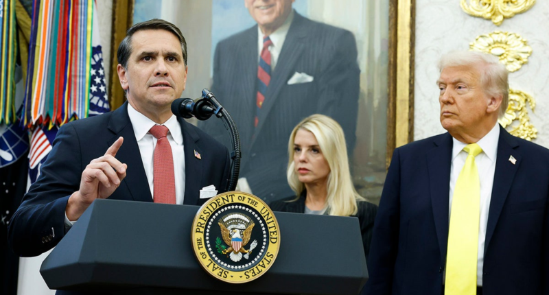 Deputy Attorney General Todd Blanche speaks as U.S. Attorney General Pam Bondi and President Donald Trump look on during a press conference in the Oval Office of the White House on Oct. 15, 2025, in Washington, D.C. (Kevin Dietsch/Getty Images)